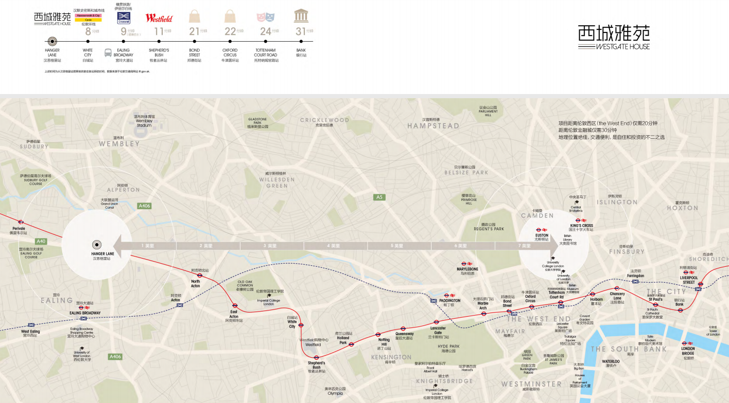 帝国理工之外,西城雅苑与英国其他著名学府的乘车距离也在35分钟之内,Crossrail开通后基本会在20分钟之内。